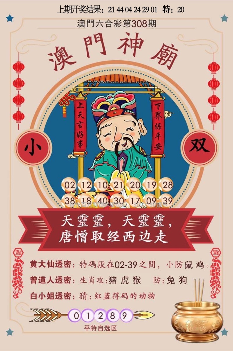 | 308期 | 鼠 | 1头双 | 红双 | 兔39准 |