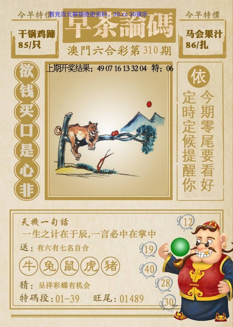 | 310期:【澳彩36码】中特=开:虎16准 |